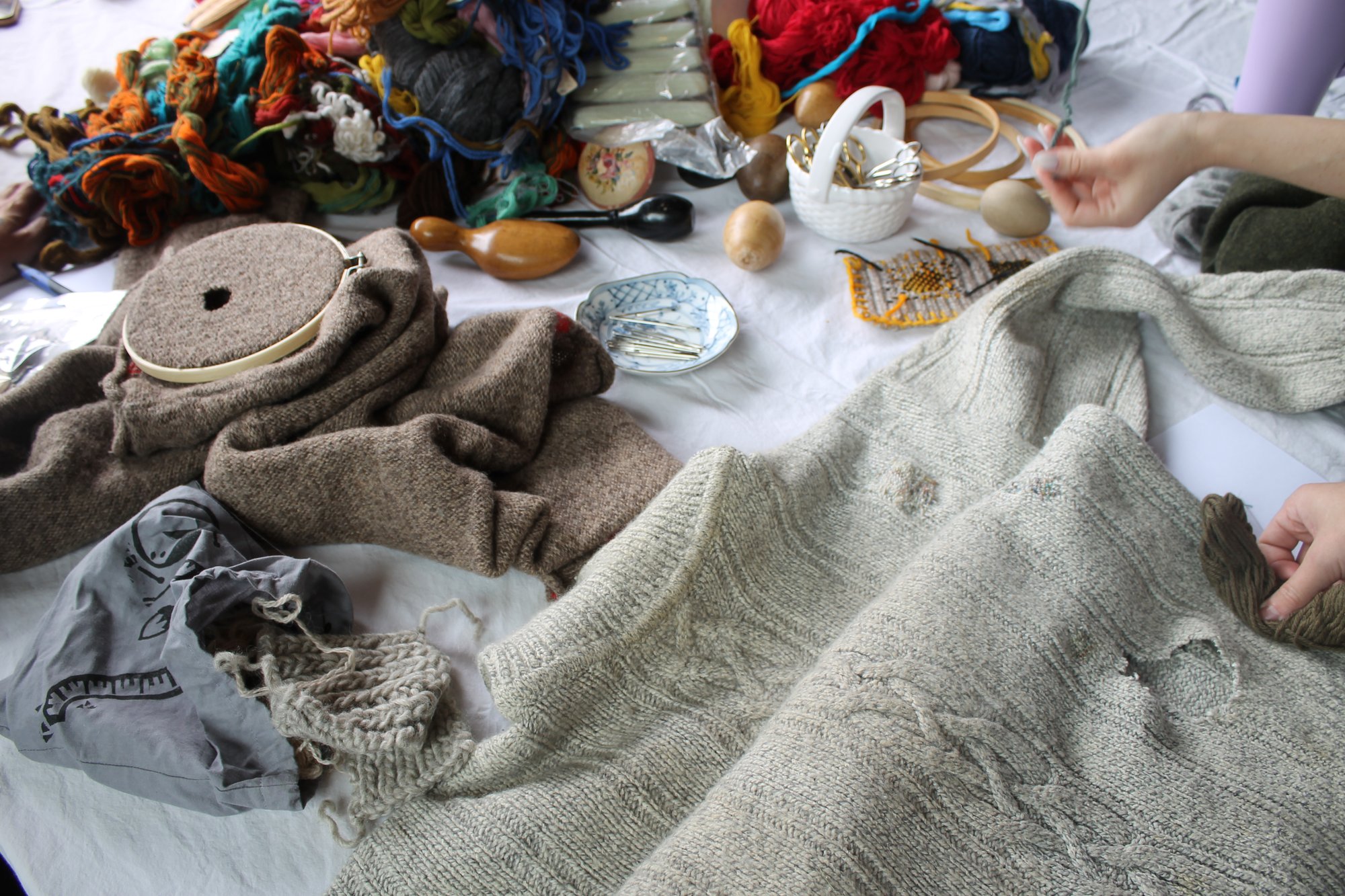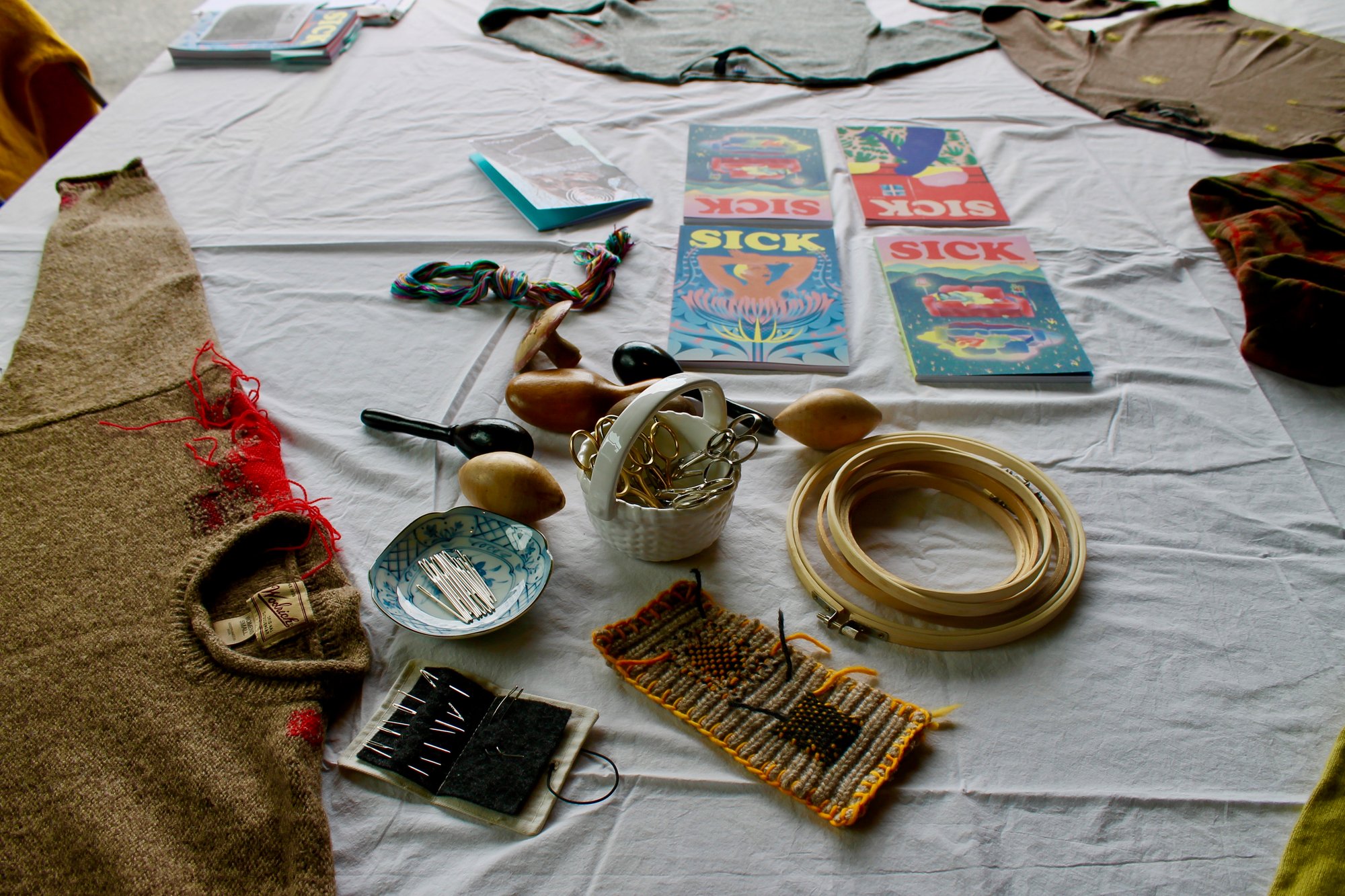 This zine contains images, quotes, and conversation from an event that took place in Portland, Maine in June 2025. Ten folks gathered with garments in need of repair and took part in a mending circle led by Maya Skylark. We discussed our own experiences with chronic illness, touching on themes such as mending our own bodies, visibility, friendships, community, rest, productivity, and more.